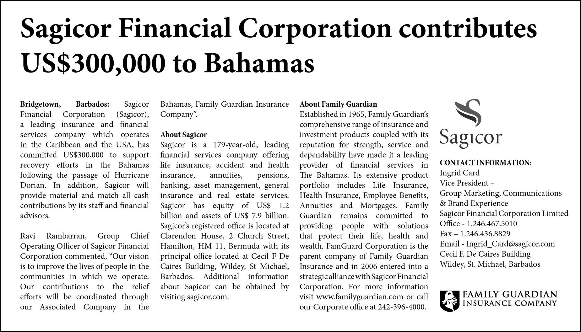 Sagicor Financial Corporation Contributes $300,000 to The Bahamas View Details September 16, 2019 7:45 pm