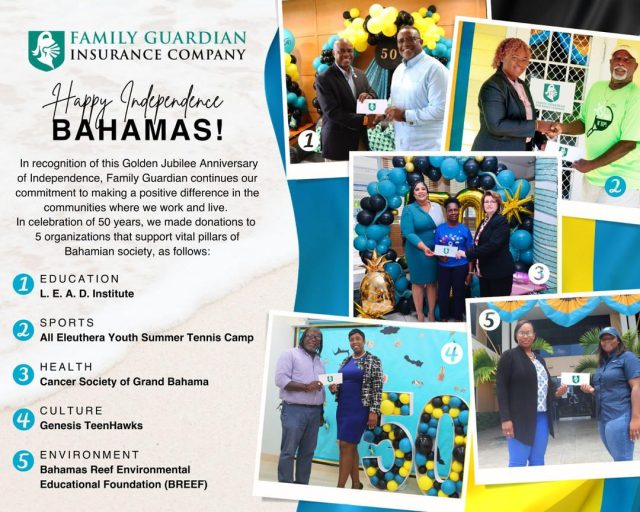 50 Year of Independence – Family Guardian made donations to 5 organizations that support vital pillars of Bahamian society